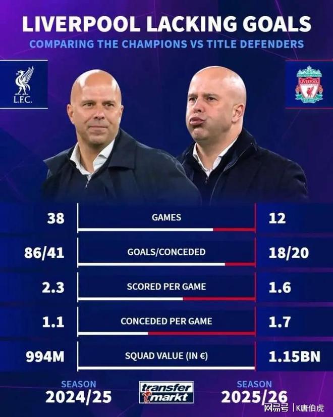 本以为首赛季的冠军奖杯可以奠定斯洛特的执教基础,孰料当下的一败再败则从另一个角度说明了他只是在吃前任的老本而已。这似乎有道理,但实际上却并非如此。比如从本赛季已经完成的12轮比赛来看,利物浦的场均控球率排名第一,这算是一个很了不起的优势,问题在于转化率,也因此球迷们质疑斯洛特这种所谓的无效控球是多余的。