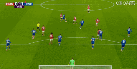 第45分钟,B费远射,皮克福德飞身扑出